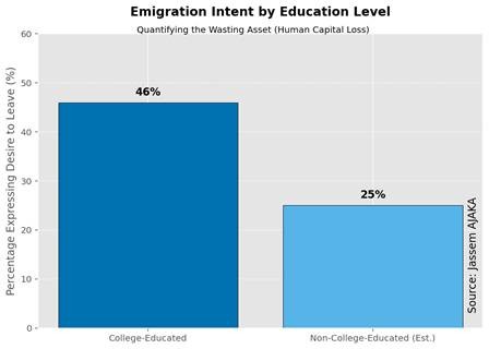 Sur le plan économique, cette migration inflige une perte sévère au secteur privé en raison de la baisse de productivité. Le capital humain est un moteur essentiel de la croissance économique, particulièrement dans les économies axées sur les services. Le perdre signifie perdre la capacité de générer de nouvelles idées susceptibles d’être commercialisées sous forme de produits ou de services, et donc perdre la capacité de créer des emplois pour les nouveaux diplômés. À long terme, cela se traduit par une baisse du PIB.